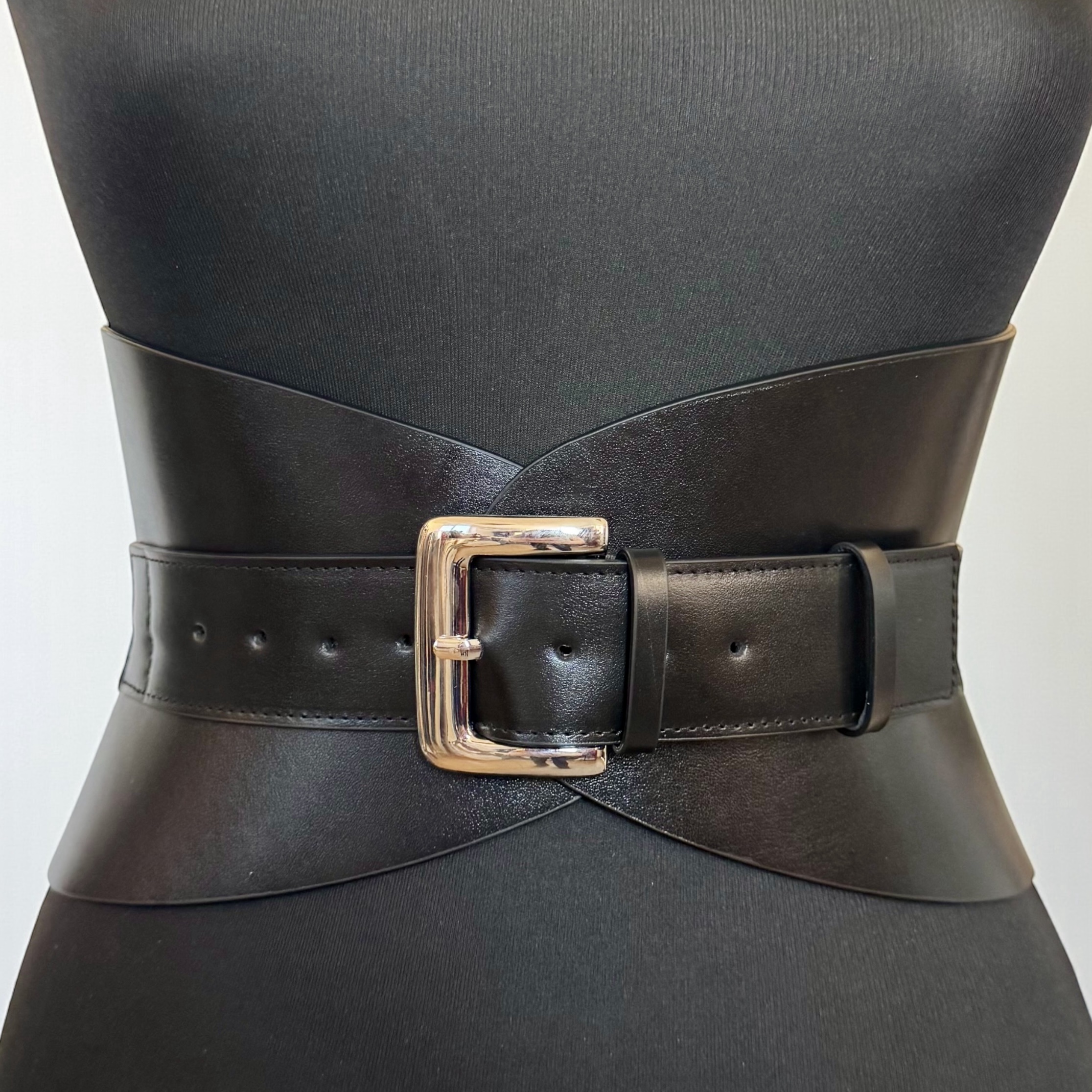 Black Leather Hourglass Corset Belt