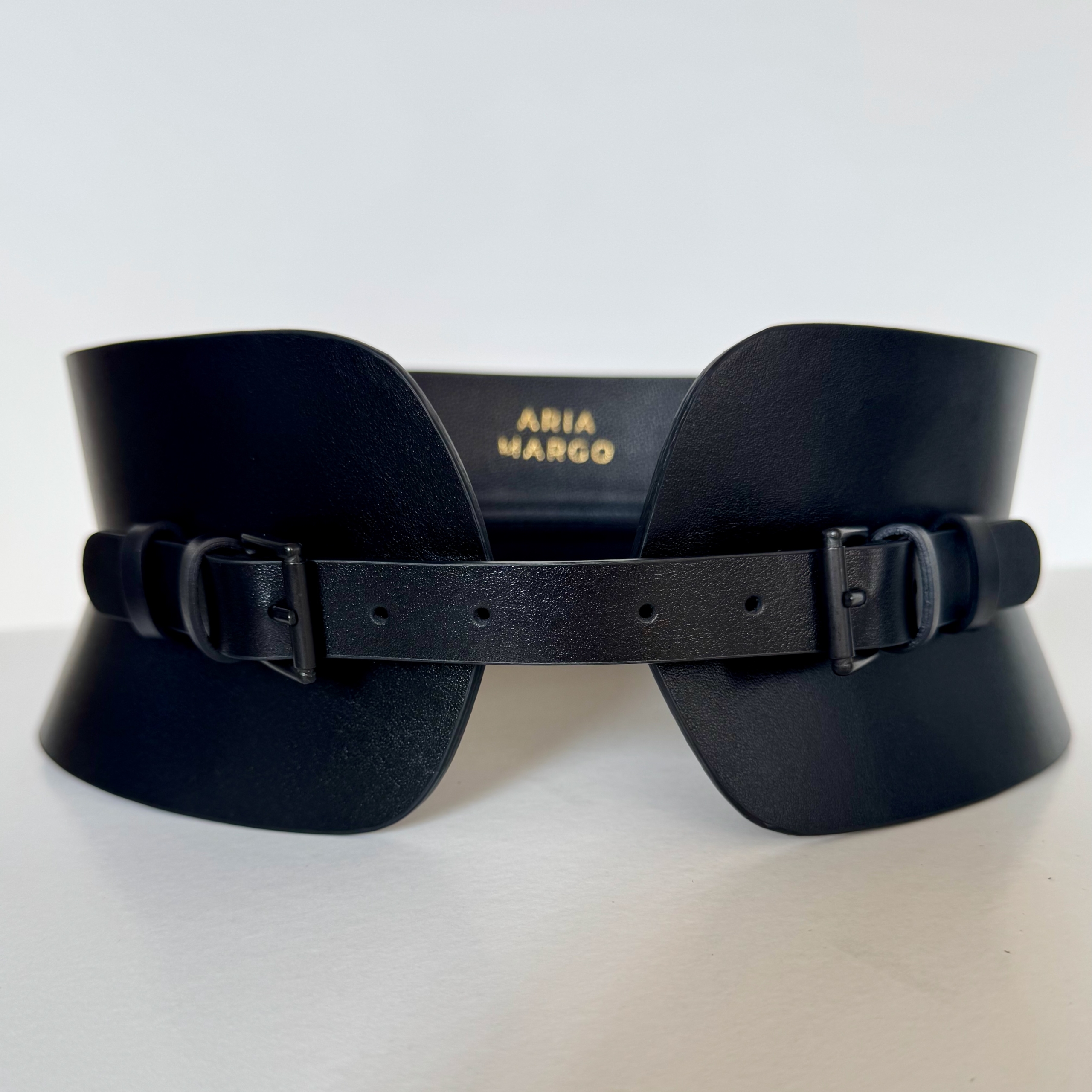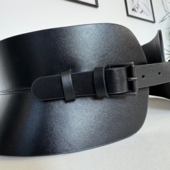 The corset is accessorised with 2 black buckles, matching perfectly with the smooth leather chosen for this belt.