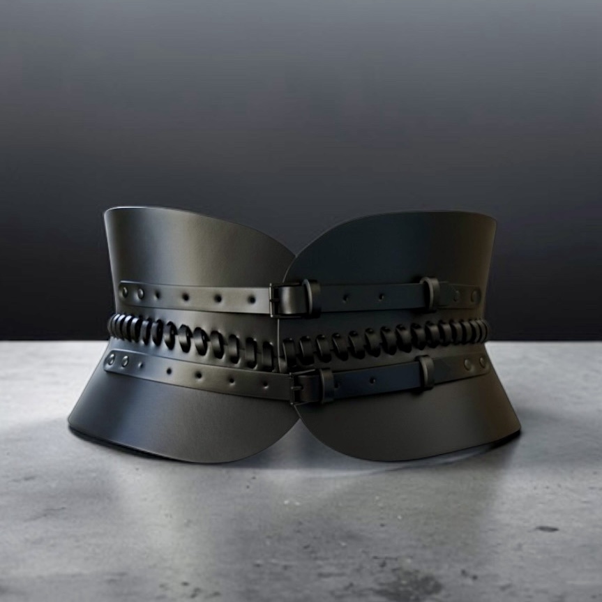 The corset is accessorized with two black buckles, that go perfectly with the black leather chosen for this corset.