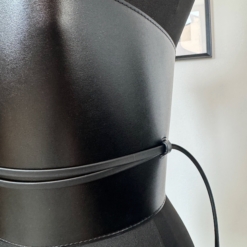 This corset belt is accessorised with two long cords so you that can be tied as you desire, in the front or in the back.