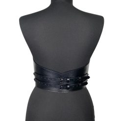 This under-bust belt is accessorised with black buckles, that go perfectly with the soft black leather chosen for this belt.
