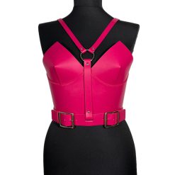 Easy to wear, this fuchsia leather harness belt can complete any outfit and transform it in a beautiful statement.