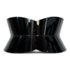 The corset is accessorized with silver buckles, that go perfectly with the smooth patent burgundy leather chosen for this belt.